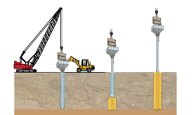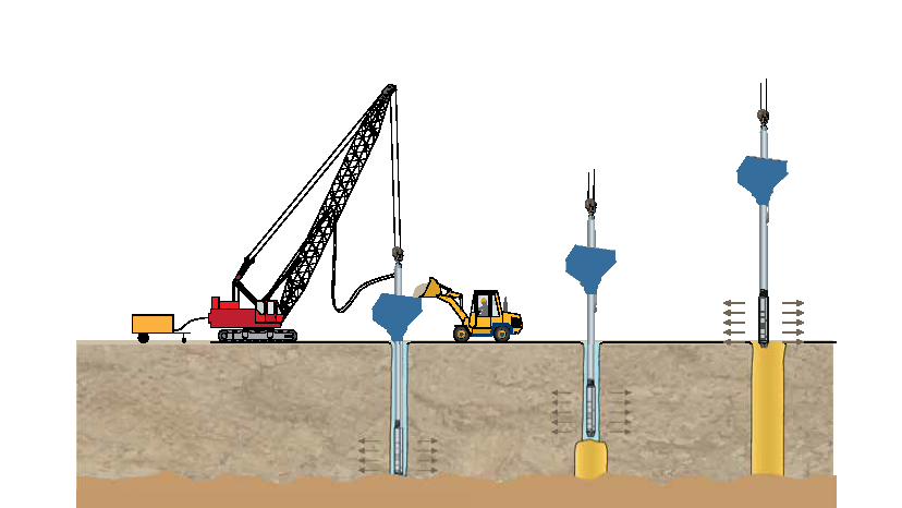 Boru yukarı çekildiğinde, borunun alt kapağı açılarak çakıl akışı başlar. Yukarı aşağı hareketler ile çakıl zemin içinde yatay olarak sıkıştırılır ve istenilen çapa ulaşana kadar işlem devam ettirilir. Bu işlem kolon boyunca yukarı doğru devam ettirilir. Kovaya çakıl ilavesi sürekli olarak yapılabilir. İstenilen çap oluşturulduğu, kalite kontrol ve kullanılan çakıl miktarı dikkate alınarak kontrol edilir. Boru çapından dolayı çap oluşma problemleri minumumdadır.
